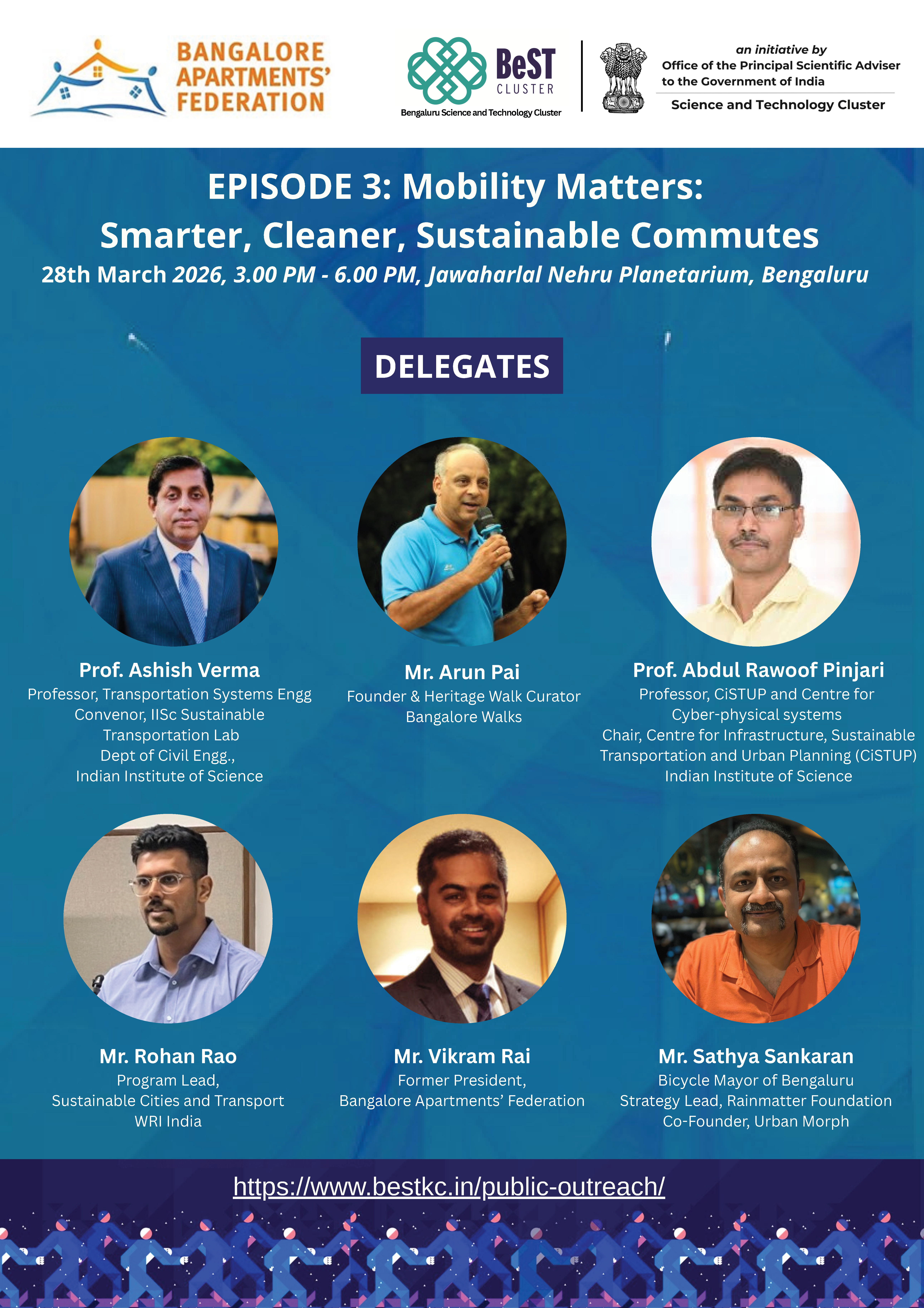 Join us for the third episode of the public talk series ‘The Science for Sustainable Urban Living’, organized by the Bengaluru Science & Technology (BeST) Cluster and Bangalore Apartments' Federation (BAF).