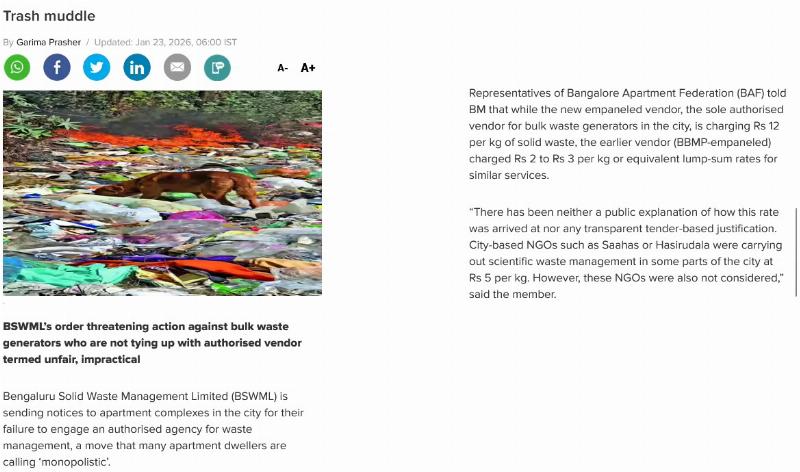 Bangalore Apartments’ Federation (BAF) was formed in 2014 (Registration No. SOR/GNR/02/2014-15) to represent and protect the interests of Apartments & Resident Welfare Associations across Bangalore.