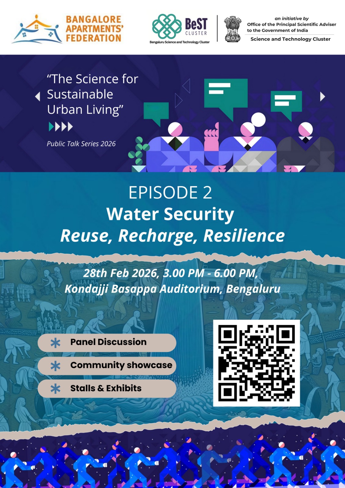 Join us for the second episode of the public talk series 'The Science for Sustainable Urban Living, organized by the Bengaluru Science & Technology (BeST) Cluster and Bangalore Apartments' Federation (BAF) focused on real urban challenges and support citizens with practical, science‑based solutions.